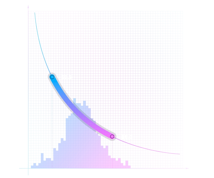 With Convexus, LPs can concentrate their capital within custom price ranges, providing greater amounts of liquidity at desired prices. In doing so, LPs construct individualized price curves that reflect their own preferences.